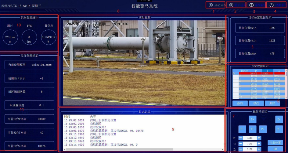 ? 實時監(jiān)控與回放:界面集成實時視頻流,并支持按路徑回放識別過程,每一只被驅(qū)趕的鳥都有視頻記錄。